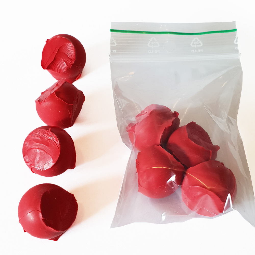 2 x 2 cm palaa punaista kongia nenätyöskentelyyn. 4 kpl pakkauksessa